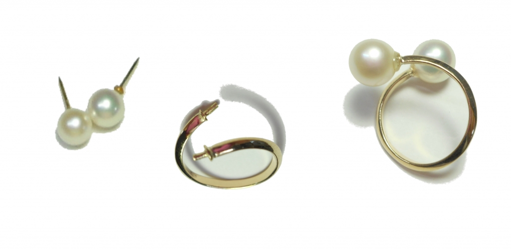 K18で出来ましたタイタックを2点お持ち込み頂きまして、K18の指輪の作成依頼です。どの様な指輪をお作りするのかは暫くお話をしまして、すぐに判明しました若い方へのプレゼントになるそうです。私供で簡単な絵を書きましてご相談頂きまして、すぐに1点の形が来まりましたので、そのデザインでK18のパールの指輪の作成となりました。若い方がお使いになりますので、ゴツクならない様に気をつけまして可愛らしくなるようにお作りしました。フリーサイズの指輪ですのでサイズが広がらない様に気をつけての作成となりました。とても...