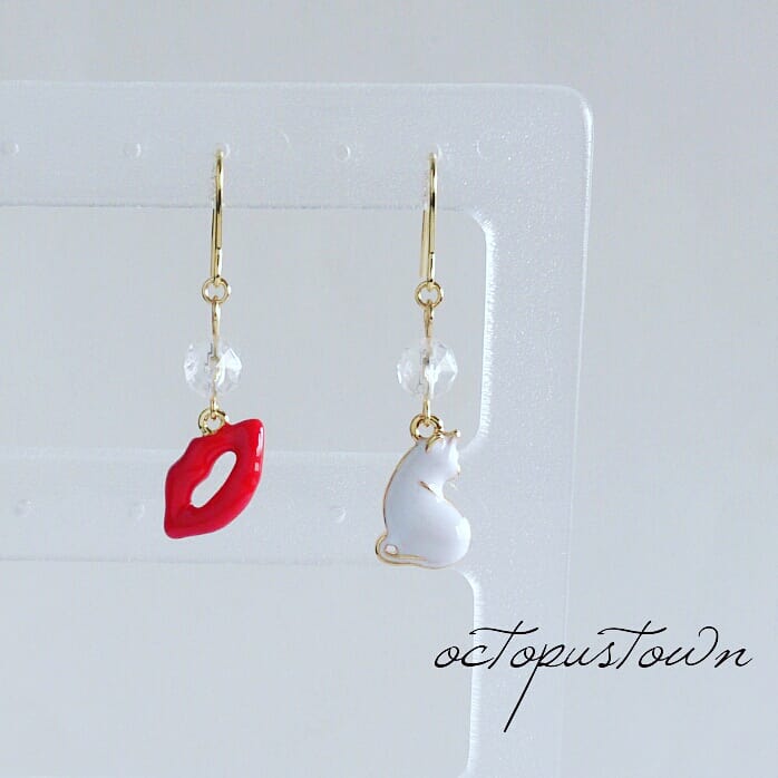 JUGEMテーマ:ハンドメイドアクセサリー こんばんは!Octopustownです。 今回は、4月の誕生石の水晶の作品を紹介させていただきます。 全ての石のマザーストーン、ダイヤカット水晶と凛々しい後ろ姿の白猫とカラフルなリップマークのポップな作品でございます。 色:ゴールド サイズ:全長約4.1?(白猫)...