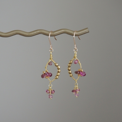落ち着かない日々が続きます。 目に見えない厄介なものとの戦いはまだまだ続きそうです。 思いっきり外で心配なく歩き回れる日がまた戻ってくる様に毎日祈るばかりです。 なかなかオシャレをする気分になれないのが現状ですが、 天然石を見てちょっぴり癒しを感じていただければと、いくつか新作を作りました。 ゴールド色のワイヤーでトルマリンをねじったり巻いたり エスニックな雰囲気のピアスです。他にグリーン、ブラウンもございます。 ポスト部分は1...