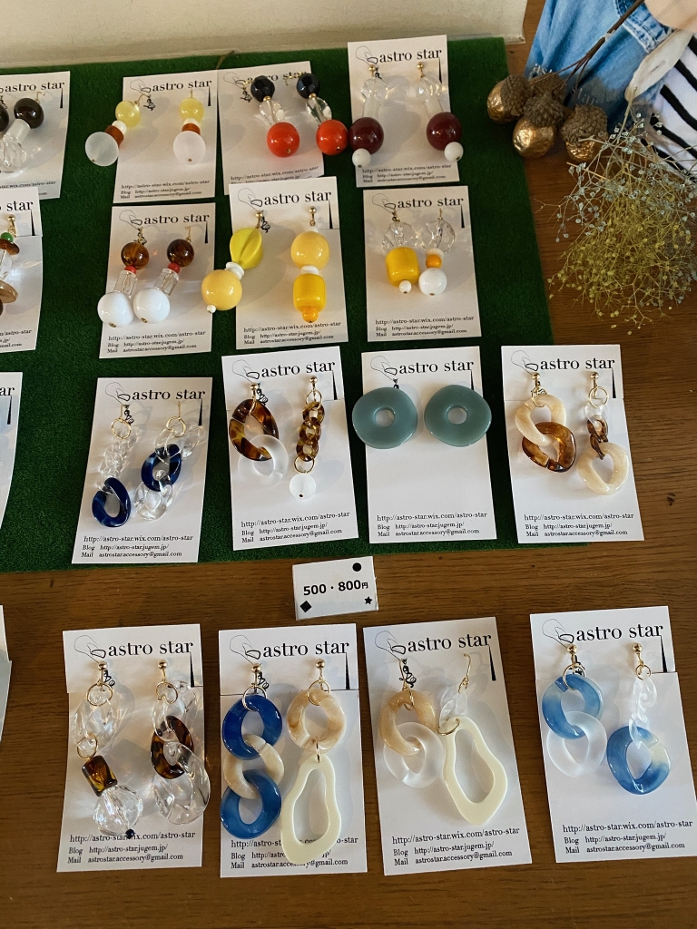 嬉しいご報告が! 岡本の一日さんでの販売が 延長していただけることになりました! ということで 少しだけ、500円と800円のイヤリング、ピアスを 増やしてきました! 他にも1000円〜2000円も作っております☆ 2000円前後のものは、フランス製パーツを 使用してます☆ オシャレです。。 もちろん500円や800円のも可愛くて・・ 私は大好きです☆ 是非見にきていただけると嬉しいです☆ JUGEMテーマ:ハンドメイドアクセサリー
