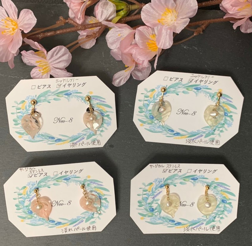 今日はあたたかいのに、冷たい風がきつくて・・・ 冷たい風のせいで縮こまって仕事してました(^^; また明日からがあたたかい日が来るのが楽しみなのと、 花粉症の辛さの間で気持ちがアップダウンしている今日このごろです! 3月1回目の商品はminneで1番人気のピアスのご紹介です! 商品のタイムロスがちょっとあり、2週間遅れでご紹介しております。 ご理解頂けますよう、お願い致しますm(__)m つぼみのイヤリング&ピアスです。 上がイヤリング、下がピアスです。 カ...