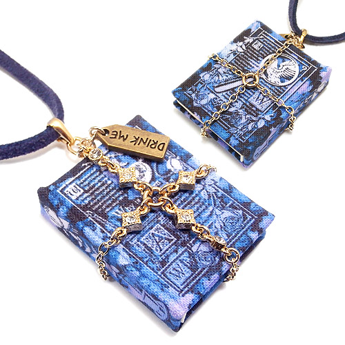 JUGEMテーマ:ハンドメイドアクセサリー こちらは、次の企画展用に試作したアレンジ作の魔法書ペンダントです。 「カラスと書き物机はなぜ似ているか?」のお色違いなのですが、はじめに考えていた以上に素敵なブルーに仕上がってテンションが上がりました。本を縛っているチェーン飾りも違っていて、これは魔法書「お菓子の国のアリス」のものです。うかつにもパーツを切らしてしまい、同じアリスがテーマの魔法書のチェーンならいいかとちょっと替えてみたのですが、これはこのままでも良い気が致します。本...