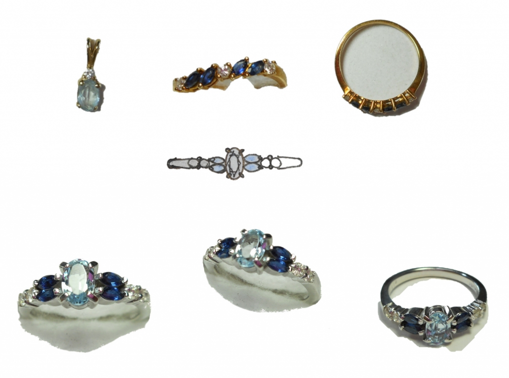 今回は。指輪のリメーク、作り換えとなります。お持ち込み頂きましたのはK18のサファイアやメレーダイヤの指輪とK18のアクアマリーンとダイヤのペンダントをお持ち込み頂きました。大変思い入れのあります方からのお品物をお引き継ぎになられたそうです。2個では一緒につけられないので、1つの指輪にリメーク、作り換えをご希望しましてこれからずっと身につけていたい。とご希望がございます。作り換えのデザインを考えますのに少々お時間を頂きまして、簡単な絵を提示しましてお客様のご了承を頂きました。天然石はアクアマリンの...