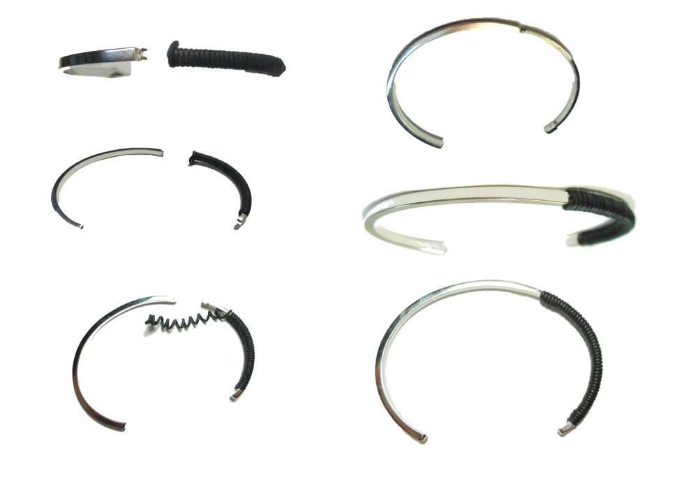 拝見致しますと、とても細い3mm幅程度のバングルの中央部分に紐を通しますφ0.7mm程度の穴が空いております。これでは、いつ折れても仕方ないと思われますが、しかしながらお客様は再び修理を行いましてまたお使いになりたいとご希望をおっしゃります。折れやすいことをお客様へお伝えしまして、注意をしてお使い頂きませんと再び同じ様に折れてしまいますことを伝えましたが、やはり修理をご希望ですので補強を入れましての修理となりす。やはりこの様な修理は新品の状態に戻る訳ではないので、修理後もお使いになります時にはお客...