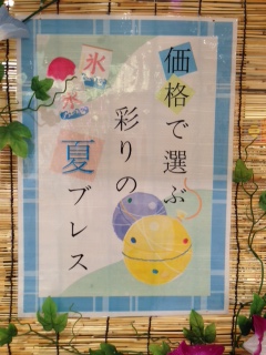 JUGEMテーマ:パワーストーン こんにちは☆自分の新ブレスのデザイン+今もっているブレスの改良を考え中の加藤でございます(^∀^)さて、今回は店頭の正面からみて左側に(トイレ側の通路沿い)新コーナー設立!!!その名ももうすぐ7月=夏がくるので夏っぽいブレスを作りました(゜∀゜*)テーマが全部で4つ海、山、ひまわり、花火があり各それぞれ¥3000〜¥4000〜¥5000〜と分かれております!!恋愛運、金運と石の意味合いで分かれているコーナーはありますが、今回は価格でわけてみましたこちらはごく一部です☆夏...