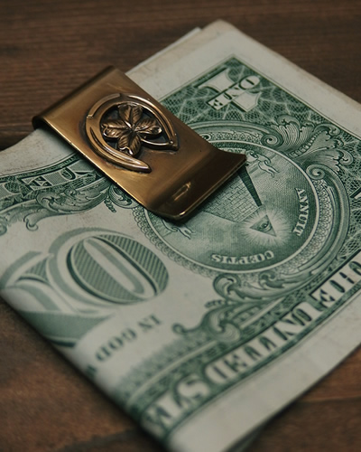 JUGEMテーマ:アクセサリー 【商品説明】 ●ホースシュー&クローバーのマネークリップ。 ●使い込む程自分だけの風合いの出る生真鍮。 ※ハンドメイド処理の為、個々に表情と質感が異なります。 詳細・購入はコチラ 【MONEY CLIP】"HORSE SHOE & CLOVER"