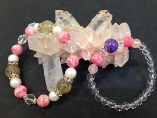 JUGEMテーマ:アクセサリー皆様おはようございます今朝はとても天気が良かったですねすごく明るかったので起きる時間を間違えたかと思って焦りましただんだん暖かくなってきて嬉しいですきっと洗濯物もよく乾くでしょう!今日は佐藤が担当させて頂きましたお客様の作品をご紹介致しますM様、撮影掲載許可をありがとうございますもともとお持ちのブレスレットはタイガーアイ、アメジストをメインカラーに落ち着いたかっこいい系のブレスでしたそして・・・こんなふうに!MIXルチルと水晶を散りばめて春らしく可愛らしい仕上がりに!飾り...