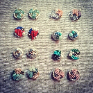 JUGEMテーマ:アクセサリー ビーズ刺繍のピアス&イヤリング沢山出来上がってます〜\(^o^)/ もうちょっと種類が増える予定(^^) こちらはイヤリングかピアスか選んで頂くセミオーダースタイルにしたいと思っています。 まとめてギャラリーの方にアップ予定なのでもうしばらくお待ちを(^^; 5/26(mon)のおうちショップまでには他の作品も合わせてご紹介出来そうです(*^^*) おうちショップお時間合われる方は是非どうぞ。ご予約お待ちしていますm(__)m