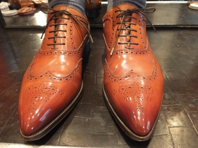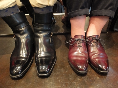 JUGEMテーマ:靴ブランド こんばんは。 シルバーウィークは如何お過ごしでしたか? 私はホテルニューオータニ店開店の準備で、買い物に走り回って いた5日間でした。 今日、ご紹介するのは、カップルでご来店頂いた素敵な2足です。 最初は右側の1足ですが、デザインは紳士靴に見えますが、女性 がオーナーです。素敵な逸品ですね〜うっとりです。 KOKONというブランドです。知りませんでした(*ノωノ) http://kanazawakokon.com/ パターンオーダーでデュプイの革が使われているそうで...