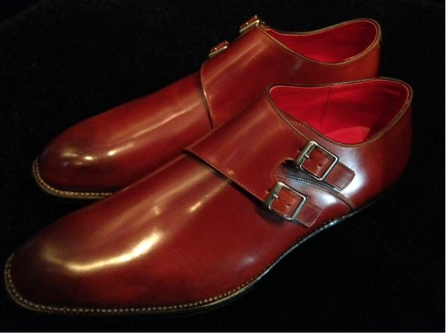 JUGEMテーマ:靴ブランド こんばんは。 こちらは土曜日にお預かりした宮城興業の逸品です。 一番気になるのが、日本のタンナーのコードバンです。 つま先部分に色が塗られているのか?バーニシングが施されてい るのか写真ではよくわかりませんが、コードバン特有のムラ感と 相まって良い感じになっています。そこにダブルモンクにライニ ングが赤・・・素敵です! ちなみにこちらはBeforeCareと履きシワが入りにくくなる熱処理 のオーダーを承っております。 新品でこれだけ輝いているのは、コード...