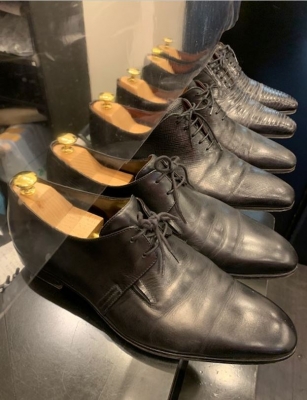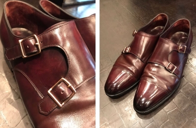 こんにちは。 今日は(も?)BERLUTIのご紹介です。 とても沢山のBERLUTIのお手入れの依頼を受けています。 このブランドは革や色の状態を見極めることが求められ、 それに合わせた技術が必要になります。 フランス研修時に同ブランド店を訪問し、パティーヌを 学んできましたが、カラリストによる感性の色付けは 誰も真似することが出来ず、本人ですら同じ色を創り出 すことが出来ないんです。 こんな技術で仕上げられた逸品は、お手入れも輝かせ方 も考えてしまう...