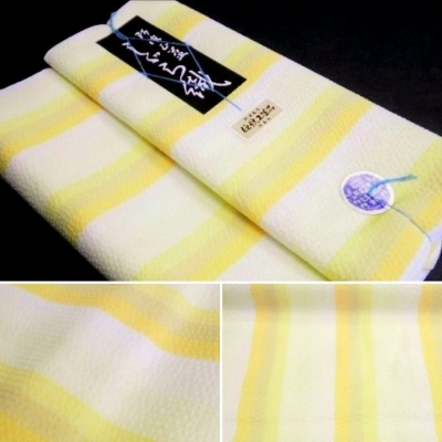 今!ようやく脚光をあびてきました。この色🍋の阿波しじら ■イエロー・yellow・レモン色・菜の花色 ■黄色のグラデーションの阿波しじら織(木綿) 反物「9000円+税」。 ※2年半前に、メーカーさんの工場でこの色使いに出会い。 着物にもOKだと思った時の事を思い出します。 もっと以前に、この色使いの阿波しじら織を、製作なさった方(お店)さんに、感謝をしつつ。 当店は、後発も後発ながら、細々と販売させて頂いております🍋^^。 ◾阿波/徳島の伝統的な綿織物「阿波しじら...