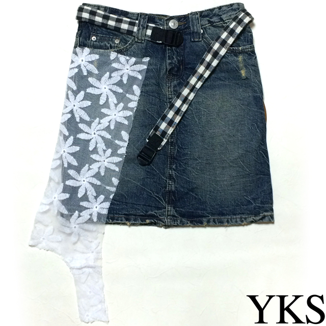 YKS レース&チェック柄 リメイク デニムスカート S 詳しくはこちら▼ https://minne.com/remake-yks JUGEMテーマ:リメイク