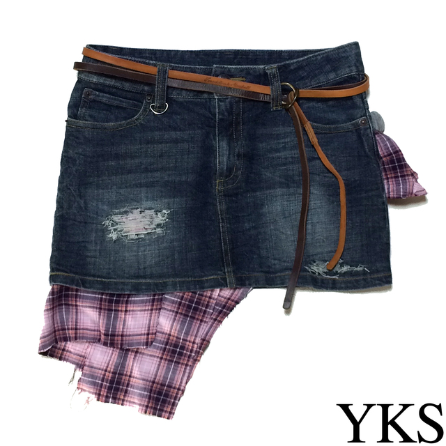 YKS ダメージストレッチデニム 皮ベルト付き ミニスカート 46-91 詳しくはこちら▼ https://minne.com/remake-yks JUGEMテーマ:リメイク