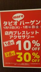 JUGEMテーマ:ラッキーアイテムJUGEMテーマ:鉱石鉱物JUGEMテーマ:パワーストーン 皆さま、こんにちは タピオは今日からmoreバーゲンに突入ですお店では勾玉や天珠、ブランドシルバー等除外品はありますが2点以上お買い上げであればついている価格よりレジにて30%OFFかなりお買い得です一部アクセサリーはこんなセールも店頭にあるアクセサリーは要チェックです数量限定なので早いもの勝ちですよ〜更に好評につきコチラのセールも延長になりました原石50%OFF!!人気のヒマラヤ水晶クラスターや黒水晶クラスターなども...