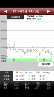 2014.7.1体組成計体脂肪18.9%骨格筋率32.8%体年齢35歳内臓脂肪レベル5体重60.2Kg