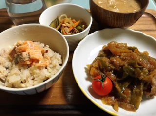 JUGEMテーマ:家庭料理のレシピ JUGEMテーマ:ダイエット食品 JUGEMテーマ:食生活 JUGEMテーマ:食育&スローライフを楽しもう JUGEMテーマ:健康のためにやっていること JUGEMテーマ:健康 JUGEMテーマ:幼児教育 JUGEMテーマ:育児 JUGEMテーマ:千葉 良質のイソフラボン、 たんぱく質尽くしで健脳、健心ディナー 酒、醤油、良質の豆乳で炊き上げるほっこり和の御飯 鮭は一緒に炊きますが、あと乗せが美味 豚モモの甘酢あん絡め 言うまでもなく御飯進みます。 もやし、きゅうりなどのナムル ...