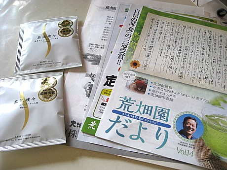 JUGEMテーマ:ダイエット食品 今日は、久しぶりに飲む荒畑園の茶流痩々のご紹介です。えと実物がこれね。 荒畑園のサイトの方を見ますと、上記のような小さいサイズの1包入りなんてのは無いみたいなんで、たぶんですが、こちらの小さいヤツはサンプル用?みたいなヤツかなと思います。 で、こちら荒畑園(あらはたえん)の国産のダイエットプーアール茶です。私プーアール茶ってのは、プーアール茶のお茶の木ってのがあると思ってたんですが、こちらの荒畑園さんのプーアール茶は緑茶。 ほれ、このとうり。...