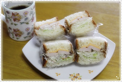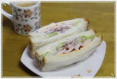 JUGEMテーマ:ダイエット日記 どうも(*´▽`*) 本日もご訪問ありがとうございます♪ ダイエット231日目(9/15) 体 重 50.6キロ 体脂肪 27.0% 起 床 10:00 朝 食 10:30 *サンドウィッチ(食パン10枚切り×2、チーズ、スモークチキン、カット野菜) *ホットカフェオレ 遅く起きた朝はサンドウィッチ(ノ´▽`*)♪ というわけで作りました…作ってみたのですが ...