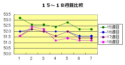 JUGEMテーマ:ダイエット日記 どうも(*´▽`*) 本日もご訪問ありがとうございます♪ まずは18週目(5/27〜6/2)のリザルトを… こうやってグラフで見ていると2日目って体重が増えやすい傾向にあるんですよねぇ …1日目にあたる日曜日にダラダラ過ごしていることが多いからかな(^^;) 18週目もグッと2日目に増量したもののその後は51キロ台を安定キープ そろそろ50キロ台に突入してもいいの...
