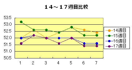 JUGEMテーマ:ダイエット日記 どうも(*´▽`*) 本日もご訪問ありがとうございます♪ 昨日はタイトル通り糖質祭りな一日(-_-;) 当然のごとく今朝の体重は大増量しておりました!! 今朝の体重の公開は明日なので楽しみにしててくださいね(笑) さっ言い訳しても仕方がないのでまた今日から頑張りたいと思います♪ まずは17週目のリザルトを(5/20〜5/26) だいぶ安定して51キロ台にとどまれている感...