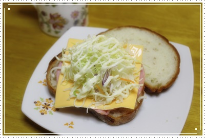 JUGEMテーマ:ダイエット日記 どうも(*´▽`*) 本日もご訪問ありがとうございます♪ ダイエット94日目(5/1) 体 重 52.0キロ 体脂肪 26.7% 起 床 5:00 朝 食 5:50 *塩パン *チーズ、カット野菜、ハム、マヨネーズ *ブラックコーヒー 前日に買ってあった塩パンでサンドにしてみました♪ ふわふわの塩パンに程よい塩味 食感も塩のジャリジャリ感がたまにあっていいんですよねぇ(...
