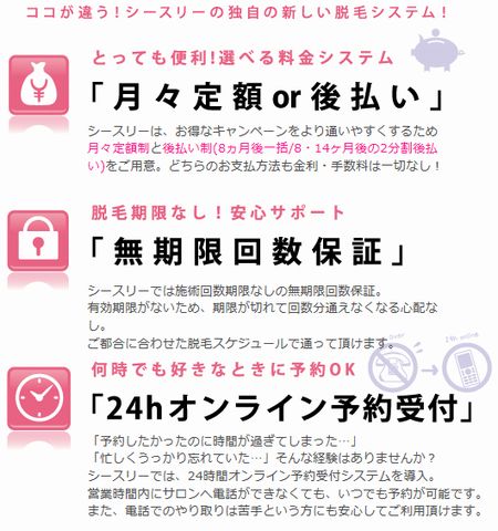 全身脱毛で顔含むお得なサロンのシースリー | 2015.03.14 Sat 18:58