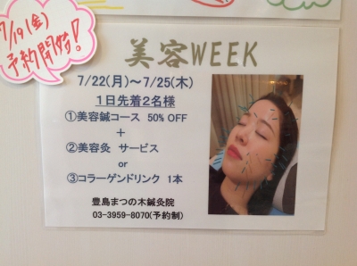 10月21日(月)〜24日(木)は 美容Weekです! 1日2名さま限定で ☆美容鍼コース 30%off! ☆スペシャルコラーゲン高性能美顔器をサービス! いつもよりお得に美容鍼を受けられる! この機会にお顔を明るくしてみませんか? 15日(木)よりご予約受付を開始します 先着ですので、15日にはぜひご連絡下さい ご予約はお電話がおすすめです 03−3959−8070 (LINEでもご予約可能ですが、先着順となりますのでお電話が優先に...