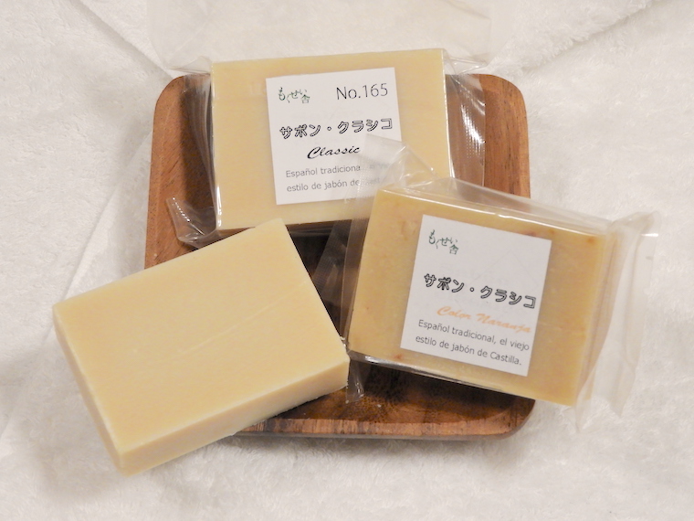 JUGEMテーマ:手作り石けん (文責:河野) もくせい舎の「サボン・クラシコ」は、スペインのカスティーリャ地方で作られていたオリーブオイルと牛脂を使った「カスティール石けん」を参考に、オリーブオイルと豚脂、ココナッツオイルを使って作り上げたオリジナルレシピの石けんです。 石けんは安土桃山時代、南蛮貿易を通じて日本にもたらされました。日本人がはじめてその泡立ちを知ったのも、スペインで作られたカスティール石けんではなかったでしょうか。 石け...
