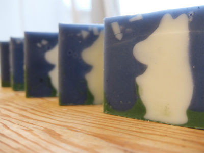 広島県からお越しの Iさんの 夏の石けん 夏の海に入道雲がモクモク〜っというイメージをお持ちでした。 石けんに関してはベテランでいらっしゃるので デザインのアドバイスをさせていただいただけです。(笑) いかがでしょうか? セミの声も聞こえてきそうな、さわやかなデザインになりました。 夏休みももうすぐですね。 いつも応援 ありがとうございます。 ↓ クリックしてね♪にほんブログ村 JUGEMテーマ:手作り石けん