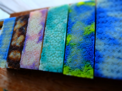 前記事のカットをどうぞ〜。 Oさんの 青い空に光のイメージ Yさんの グリーンが美しい Mさんの〜ピンクとパープルが絶妙です。 Nさんの 夏の海、美しい♪ とっても楽しく作ってくださって、 次回も楽しみにしてくださって嬉しいです。 いつも応援ありがとうございます。 ↓ クリックにほんブログ村 JUGEMテーマ:手作り石けん