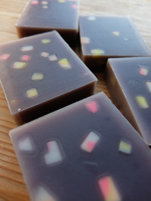 Kさんの紫根の石けん 渋い色の中に かわいいかけらを入れました。オリーブオイルに紫根を抽出 時間をかけずに確実に抽出します。薬草などは長時間オイルに漬けりゃいいってものでもないので素材によって方法もかえます。どのカットも表情が違っていてかわいいのよ〜〜ん香りがキリリすっきりで 夏まで使えそうです。いつも応援ありがとうございます。 ↓ クリック ぬりかべ(笑)にほんブログ村JUGEMテーマ:手作り石けん