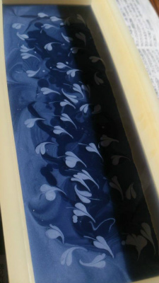 Mさんのもう一つの作品 紫根の石けんです。 てっとり早く、しかも確実に色を取ります。アルコール使うと面倒だし、長時間オイルにつけっぱなしも置き場所が必要。なので、作成当日にバサッと色を抽出します。 デザインは、一部に白を混ぜています。 雲龍のようです。 禅寺の天井画のようなかんじ。 次第に色も変化していくのが、紫根の面白いところ。。 早速お送りしますね。お酒の石けんといっしょに。 いつも応援ありがとうございます。 ↓クリック♪ にほんブログ村