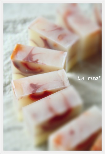 デザインせっけんは、その道具ならでは! という方法もあります。 先日、マイスター講座でペットボトル法を実習した時に ヘラなどを使わないグラデーションを体験していただきました。 Tさんの ペットボトル使用なのでグラデーションが水平になるのは難しいのですが ゆる〜く弧を描くというか ちょっとタレた感じがまた とってもかわいいと思う♪ いつも応援ありがとうございます。 ↓ クリックしてねにほんブログ村 JUGEMテーマ:手作り石けん