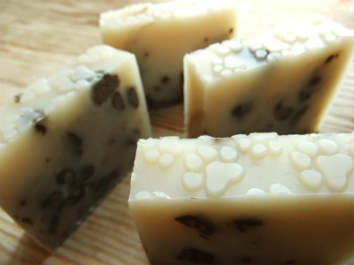 肉球もようがかわいいね。Iさんの。 くろ豆みたいなのは、ガスールです。 しっかり混ぜずに、ざっくりいれるのもいいですね。 個性的な石けんになりました♪ いつも応援ありがとうございます。 ↓ ランキングはこちら。 にほんブログ村