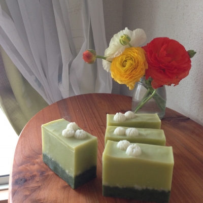 ■春の手づくり石けんワークショップ 「はちみつよもぎ石けん」の会冬のゆきだるま石けんにひきつづき、春の石けんのワークショップを開催いたします。今回はよもぎをじっくり浸け込んだインフューズドオイルを使用し春らしいグリーンの石けんをつくります。自然の色素で、きれいなやさしいグリーンが出ますよー(*'v`*)緑一面のクローバー畑の風景をイメージして2層のレイヤデザイン、トップにシロツメクサのコンフェを飾ります。クローバーのはちみつも加えます。春の石けんということで…ピンクや黄色のカラフルなものも考えま...