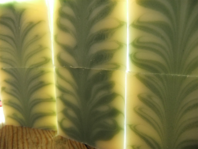 鳥取からお越しくださった、Uさんのナチュラルカラーの波模様ほわんほわんと、間の白い波がかわいいです。こちらは、石けん熱かなり上昇の Dさんピーコック模様のアレンジでウエーブに仕上げました。泡立ちアップのレシピで、トレースが重い状態でのデザインなのですがその分、南の島のビッグウエーブっぽくできました♪いつも応援ありがとうございます。 ♪Clickにほんブログ村