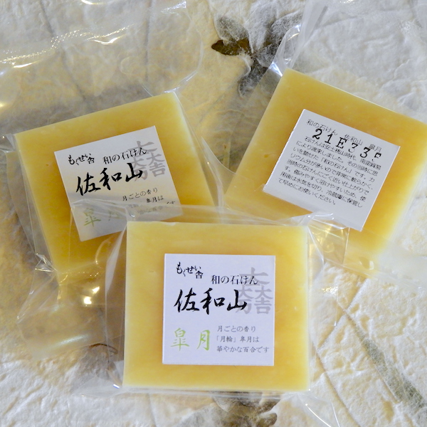 JUGEMテーマ:手作り石けん (文責:河野) 「月輪(つきのわ)」と銘打って、調製した月ごとにイメージした香りづけをしてお届けしている、和の石けん「佐和山」に、初夏の香りとして「皐月」が登場しました! 「佐和山」は低刺激の太白胡麻油をベースに、泡立ちの細やかな荏胡麻油やなたね油、さわやかな香りのある蜜蝋、保湿性のあるひまし油、スキンケアオイルとして定評のある馬油のほか、オリーブ油とココナッツ油を加えて作り上げた、もくせい舎オリジナルの石けん...