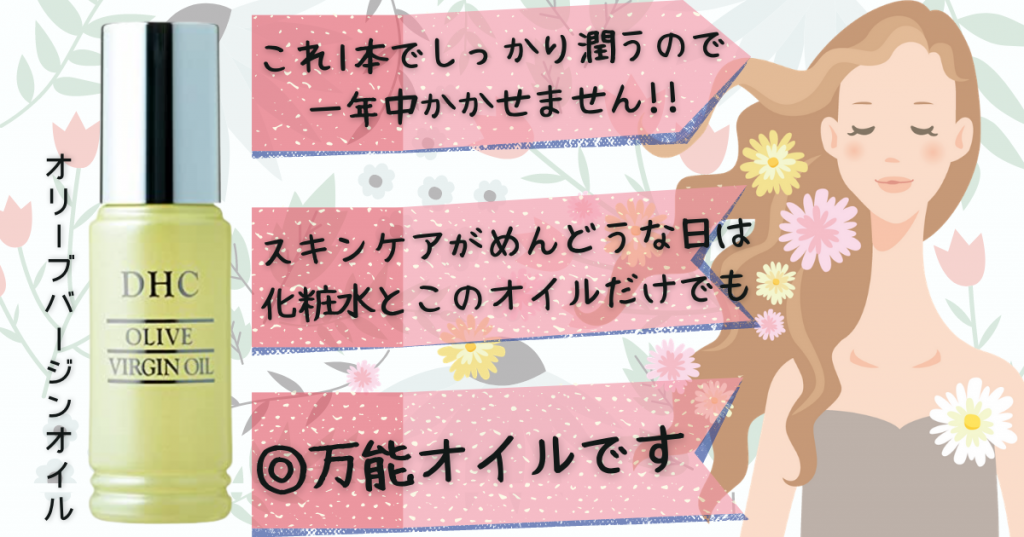 JUGEMテーマ:スキンケア これ1本でしっかり潤うので一年中かかせません!! スキンケアがめんどうな日は化粧水とこのオイルだけでも ◎万能オイルです♡ 【DHCオリーブバージンオイル】 全てにおいて◎です! ・ニキビ ・乾燥 ・保護 ・手 ・かかと 全身使える!! 一滴でいいのでコスパも最高♡ 他社のオイルとは全然違います♡ 一年中出手離せません!! 【DHCオリーブバージンオイル】