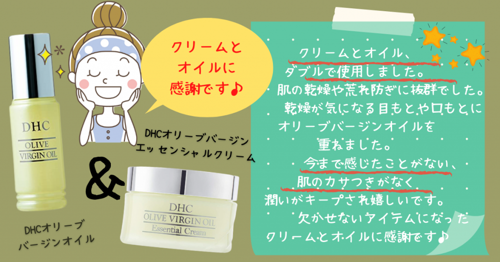 クリームとオイル、ダブルで使用しました。 肌の乾燥や荒れ防ぎに抜群でした。 乾燥が気になる目もとや口もとにオリーブバージンオイルを重ねました。 今まで感じたことがない、肌のカサつきがなく潤いがキー JUGEMテーマ:スキンケア プされ嬉しいです。 欠かせないアイテムになったクリームとオイルに感謝です♪ 【DHCオリーブバージンエッセンシャルクリーム】 【DHCオリーブバージンオイル】