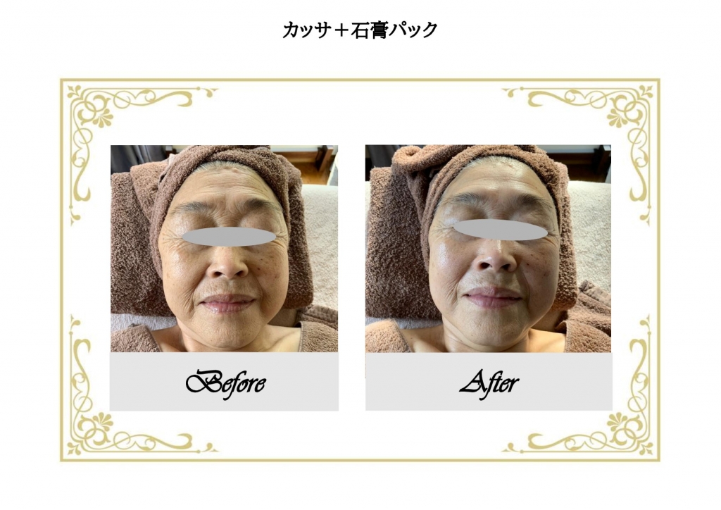 JUGEMテーマ:スキンケア こんばんは、エクラムの峯岸です。 今日、初めて叔母のお顔のお手入れをしてあげました。 年齢、もうじき70歳です。 シミは、あまりないけど、ずぼらでお手入れは殆どしていません。 これでも、トリロジーを使うようになって、だいぶシワは減りました。 今回は、更にシワを浅くして、肌に栄養を与えようとカッサ+石膏パックをしました。 携帯の写メなので、画質が悪いのと顔からの...