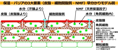 では、皆さんが化粧品メーカの開発者だとして、乾燥肌ケアと いう視点で眺めた場合、どのような方針を立てられるでしょうか? 実に簡単なことです。 自らセラミドを作る能力を上げてやればいい セラミドを補給してやればいい 自らNMFを作る能力を上げてやればいい NMFを沢山補給してやればいい 要するに、乾燥肌スキンケアの方針としては減少した「保湿」「バリア機能」に有効な物質を自ら産生する能力をアップさせるか、物質そのものを補給してやることしかないのです。  ...