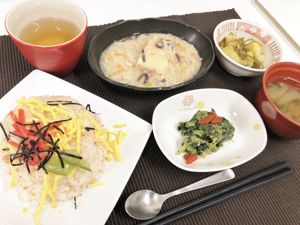 JUGEMテーマ:寿司 JUGEMテーマ:豆腐 JUGEMテーマ:美肌ケア JUGEMテーマ:乾燥肌スキンケア JUGEMテーマ:薬膳料理 **薬膳料理で美肌・保湿** ■ちらし寿司 サケは消化・吸収の良い良質なタンパク質に富み 代謝を促すビタミンB群や、カルシウムの骨への 吸収を進めるビタミンDが豊富に含まれています ■豆腐のあんかけ 〜豆乳仕立て〜 豆腐と豆乳を合わせて、潤いアップ! 肌やのどをしっとりさせてくれます ■...