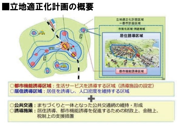 JUGEMテーマ:住宅取得に必要なニュース・知識 住宅や商業、福祉施設などを一定の区域に集積する「立地適正化計画」の策定が、全国の自治体でかなり進んでいます。急激に進む人口減少に伴い、コンパクトな街に変えて生活に不可欠な機能を維持するのが目的です。同計画の策定の有無は、住宅の資産性に大きく影響する可能性があるだけに、これから家を買う方は、見落としてはならない重要な制度です。 立地適正化計画は、都市再生特別措置法に基づき、市町村が策定する計画。令和3年4月1日時点で、...