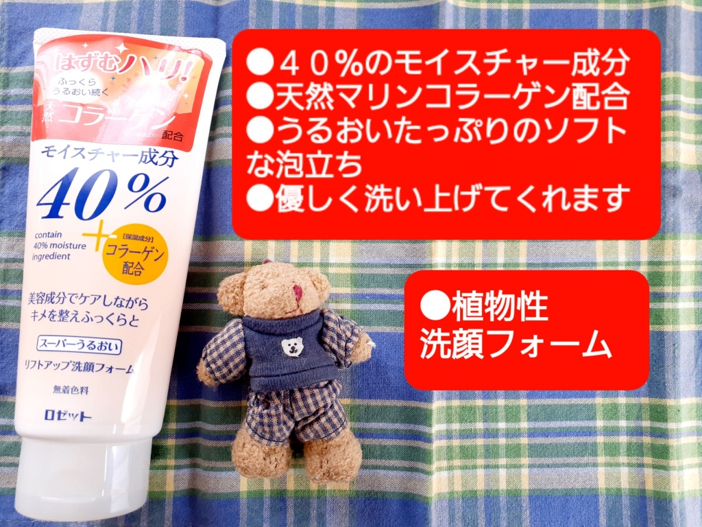 JUGEMテーマ:コスメ JUGEMテーマ:石鹸・シャンプー・化粧品 「ロゼット 40%スーパーうるおいリフトアップ洗顔フォーム」楽天市場で買いました。 ★理由は 単純にパッケージの文言「40%モイスチャー成分・天然コラーゲン」の文字が気になりました。 コストパフォーマンスが高いので試しに購入。 ★特徴は (商品ページより) 40%のモイスチャー成分 お肌のハリと弾力をもたらす天然マリンコラーゲンをプラス 植物性洗顔フォーム うるおいたっぷりのソフトな泡立ち 天然のコラー...