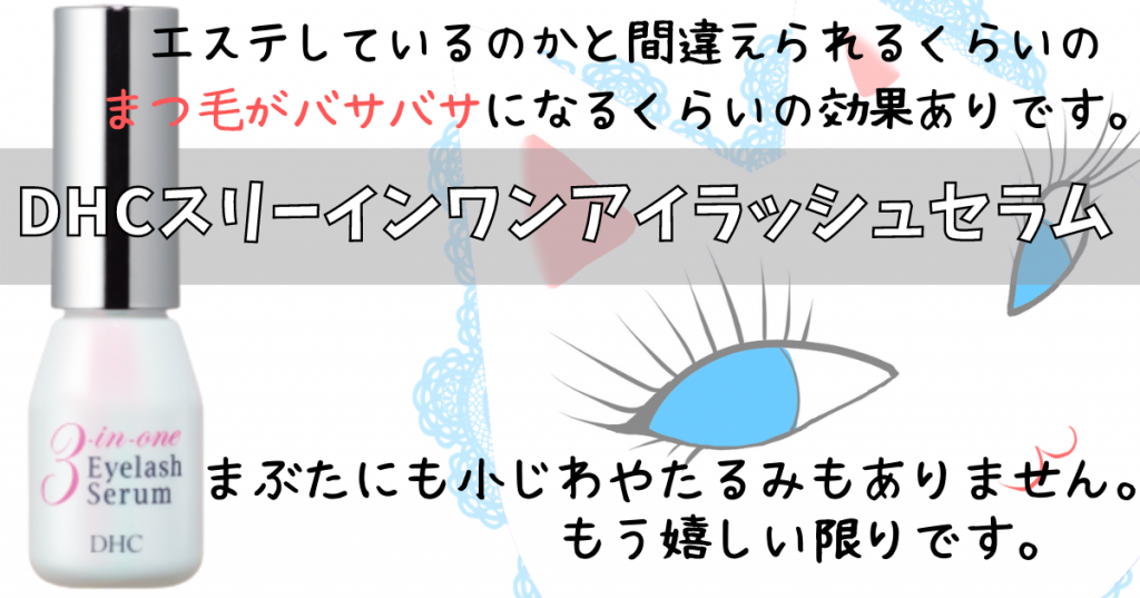 JUGEMテーマ:コスメ エステしているのかと間違えられるくらいの まつ毛がバサバサになるくらいの効果ありです。 まぶたにも小じわやたるみもありません。 もう嬉しい限りです。 【DHCスリーインワンアイラッシュセラム】