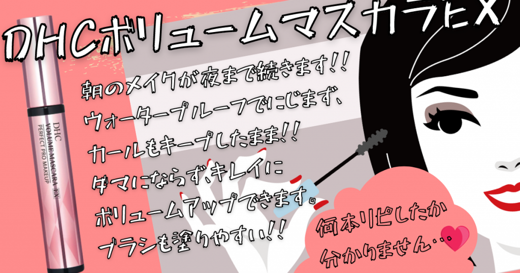 JUGEMテーマ:コスメ 朝のメイクが夜まで続きます!! ウォータープルーフでにじまず、カールもキープしたまま!! ダマにならず、キレイにボリュームアップできます。 ブラシも塗りやすい!! 何本リピしたか分かりません…♡ 【DHCボリュームマスカラEX】