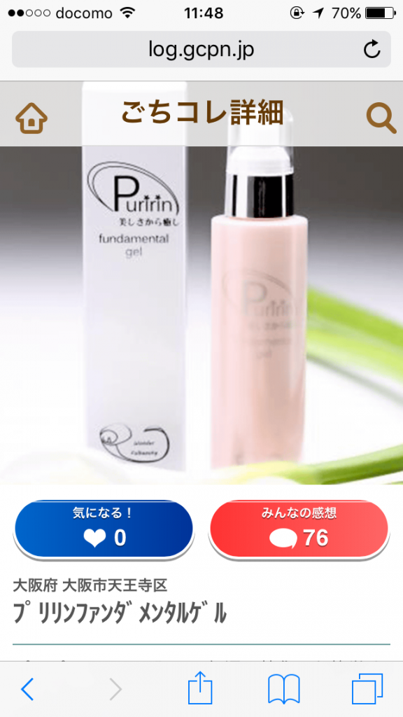 JUGEMテーマ:美容アイテム たくさんの方にプリリンファンダメンタルゲルをしっていただこうと、スマートフォンアプリ「ごちぽん」 にPuririn fundamental gel 10mlを景品として提供しております。 詳しくはこちらhttp://log.gcpn.jp/detail/mCollection/m_collection_id/6012/m_collection_id_from/2 うれしい感想をたくさんいただいておりますので、ご紹介いたします 「いま...