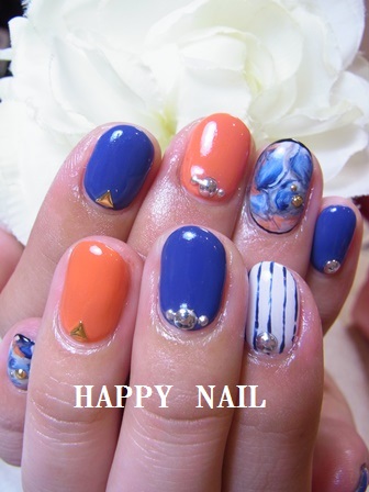オレンジ × ネイビー 夏を 思いっきり楽しもう〜〜 短い お爪でしたので。 ふふふ。 思い切った派手めな お色で させていただきました 太陽のような まぶしい オレンジ 夏の夜空のような ロマンティックブルー いつもと ちょっと雰囲気ちがう感じなので 飽きてらっしゃらないかしら ・・・ 次回の ネイルも 楽し...