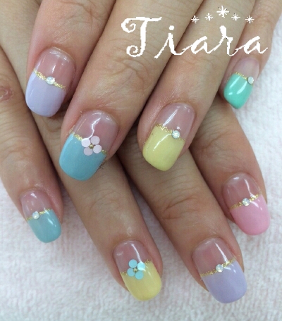 スタッフ加藤です! 5色のパステルカラーをランダムに! まっすぐフレンチ+ゴールドラインで 可愛らしいイメージに☆ ホロのお花とストーンで 統一感あるネイルになりました! すきなものを詰め込めるネイルでした♪ JUGEMテーマ:ジェルネイル JUGEMテーマ:春色ネイル 〜〜〜〜〜〜〜〜〜〜〜〜〜〜〜〜〜〜〜〜〜〜〜〜〜〜〜〜〜〜〜 まつげエクステ&ネイル◆ティアラ 目黒駅前店・旗の台店・蒲田店・新丸子(武蔵小杉)・戸越銀座店 http://www.tiara-beauty.net/ 〜〜〜〜〜〜〜〜〜〜〜〜〜〜〜〜〜...